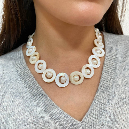 TAJE Perlmutt-Ohrringe: Weiss