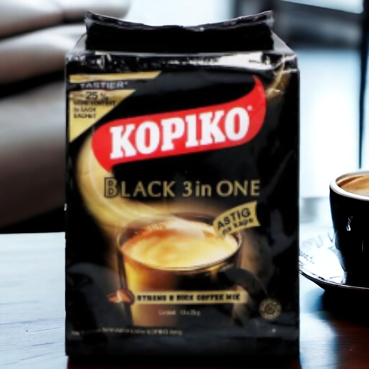 Expiry date: 2026/02/18Deliciously satisfying, Kopiko Black 3 in ONE 10x30g takes you to caffeinated bliss! A creamy blend of sugar, creamer, and real coffee extract, it's sure to give you the energy boost you need to get through the day. Get ready to experience the smooth, sweet flavor of Kopiko Black 3 in ONE 10x30g! Woohoo!!