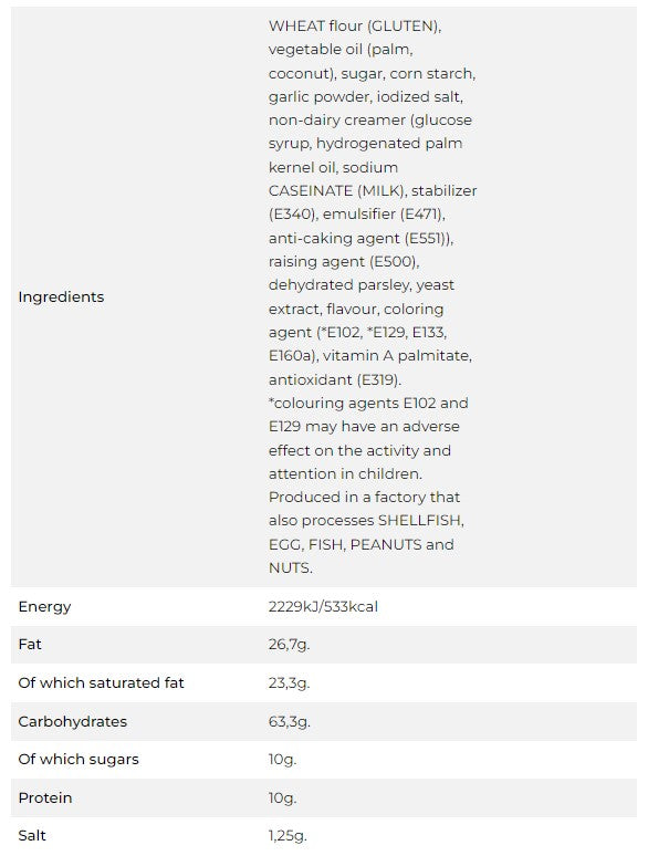Expiry date: 2027/01/22Your toast game is about to get toasty af – try Bread Pan's 42g Toasted Garlic! Perfect for spicing up your breakfast, snack or even dinner, these crunchy treats will have you coming back for seconds (or thirds!). Go on, indulge yourself (and your taste buds!).