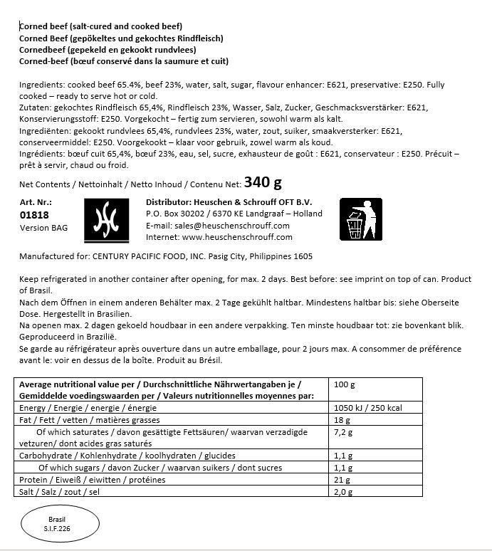 Expiry date: 2027/07/04Enjoy a delicious, 340g portion of corned beef with this quality product, perfect for simmering slowly to achieve soft, melt-in-the-mouth texture. Each 340g pack is full of flavor, and is an excellent source of protein, making it a great option for your culinary needs.