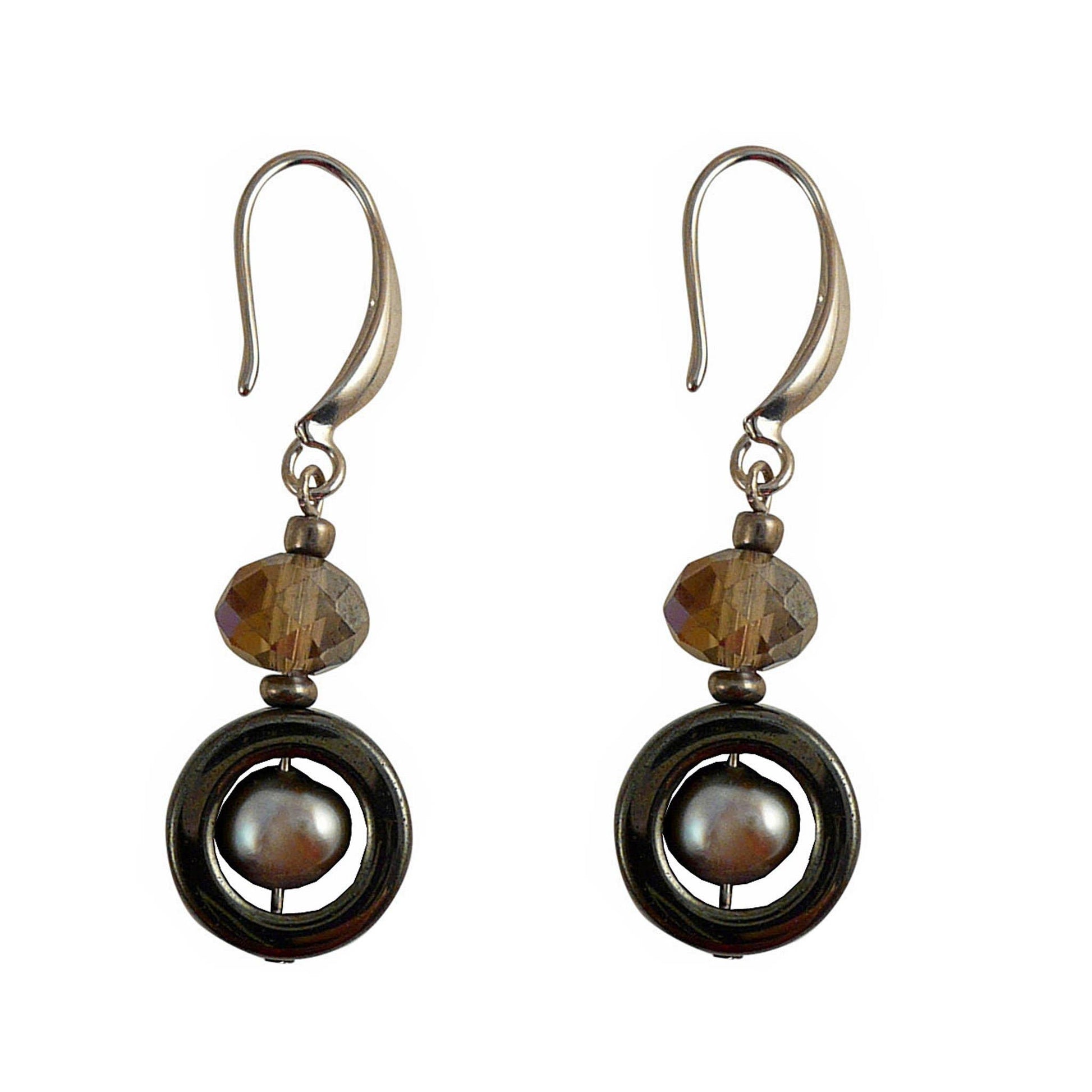 Hämatit-Perlen-Ohrringe Süßwasserperlen, Hämatitperlen, Metallzubehör Ca. 3 cm lang Mindestbestellmenge x2 ~~~ Wir arbeiten seit der Gründung von Lotusfeet mit Mod (Emod Batua) und Omar zusammen. Ihr Geschäft ist auf Perlenschmuck spezialisiert und umfasst viele Mitglieder ihrer Großfamilie. Es war jedoch Mods verspielte Mischung aus Steinen und Perlenanhängerarmbändern, die vor über zehn Jahren unsere Aufmerksamkeit erregte. Während einige dieser frühen Designs noch Teil unserer Kernkollektion sind, entwickeln wir gemeinsam immer neue charmante Designs. Mods Partnerschaft mit Lotusfeet hat es ihrem Familienunternehmen ermöglicht, sich in neue Bereiche zu verzweigen, und hat der nächsten Generation geholfen, eine höhere und tertiäre Ausbildung abzuschließen, sich nach Übersee zu verzweigen und eigene neue Familien zu gründen. ~~~