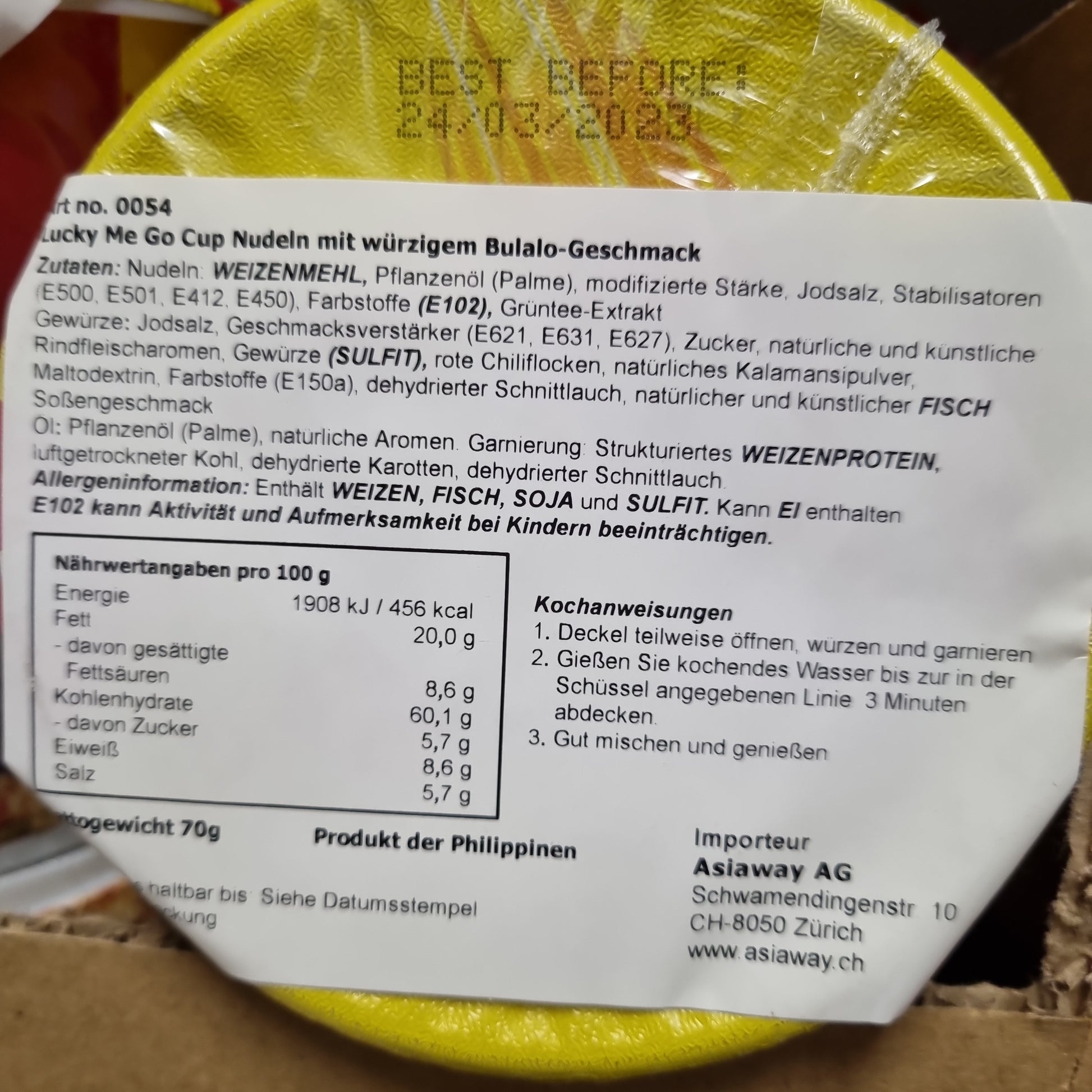 Expiry date: 2025/11/30Indulge in a burst of spicy and savory flavors with Lucky Me Spicy Bulalo Cup Noodle! Each 70g cup is packed with real beef and vegetable bits for a satisfying meal on-the-go. Enjoy the convenience and deliciousness in every bite!