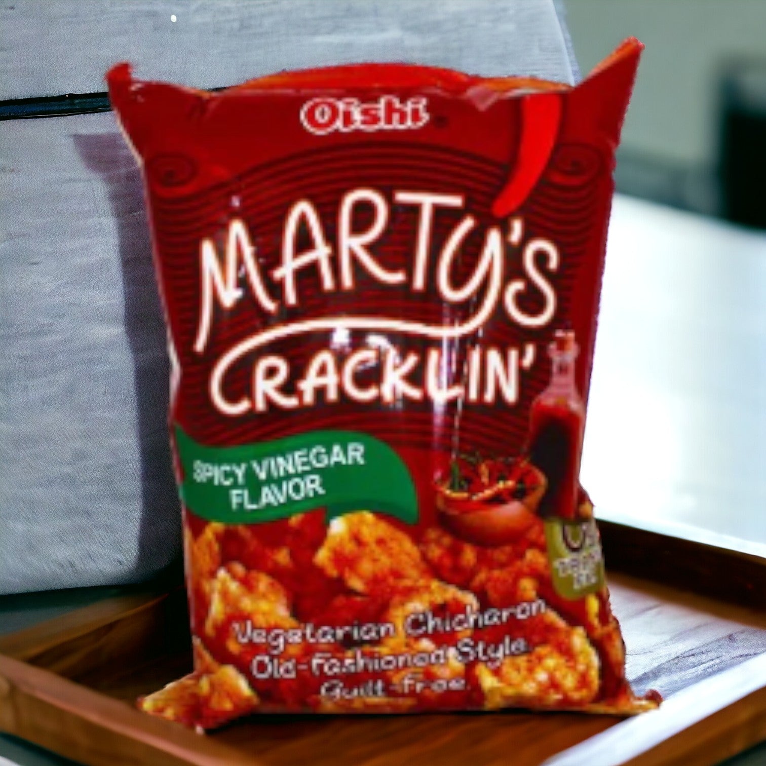 Introducing Martys Vegetarian Chicharon: the crunchy, vegan-friendly snack you've been craving! Experience the amazing flavor of real vinegar and a hint of heat in every bite. Perfect for a vegan lunchtime craving or for adding a flavorful kick to any meal! A healthy, tasty treat you can enjoy guilt-free! Yum yum!