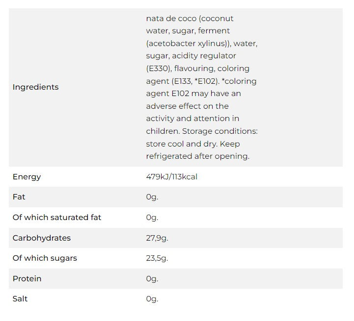 Expiry date: 2027/10/22Discover the taste of green Nata de Coco, a delicious coconut dessert that'll take your taste buds to paradise. This 340g pouch of Nata de Coco Green is packed with sweet, juicy pieces that'll leave you wanting more! Enjoy the delightful texture, distinctive flavor, and tropical goodness with every bite!