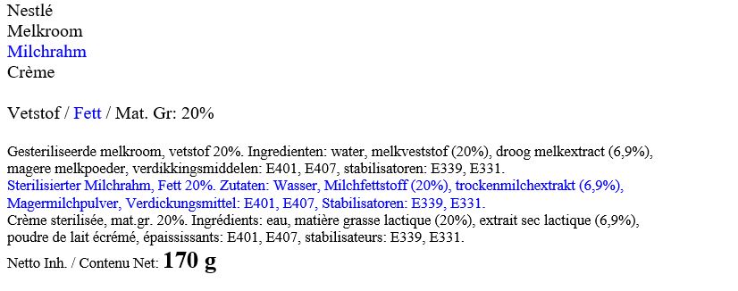 Nestlé Cream / Milchrahm 170g