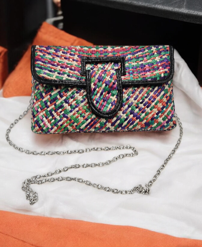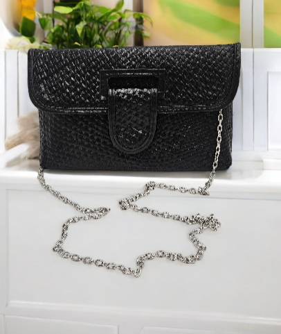 Elevate your style with our Pandan Overlap Bag/Clutch w/ Chain! Made from natural pandan material, this versatile bag/clutch easily transitions from day to night. With its convenient chain strap, it can be worn as a shoulder or crossbody bag. Perfect for adding a touch of elegance to any outfit.