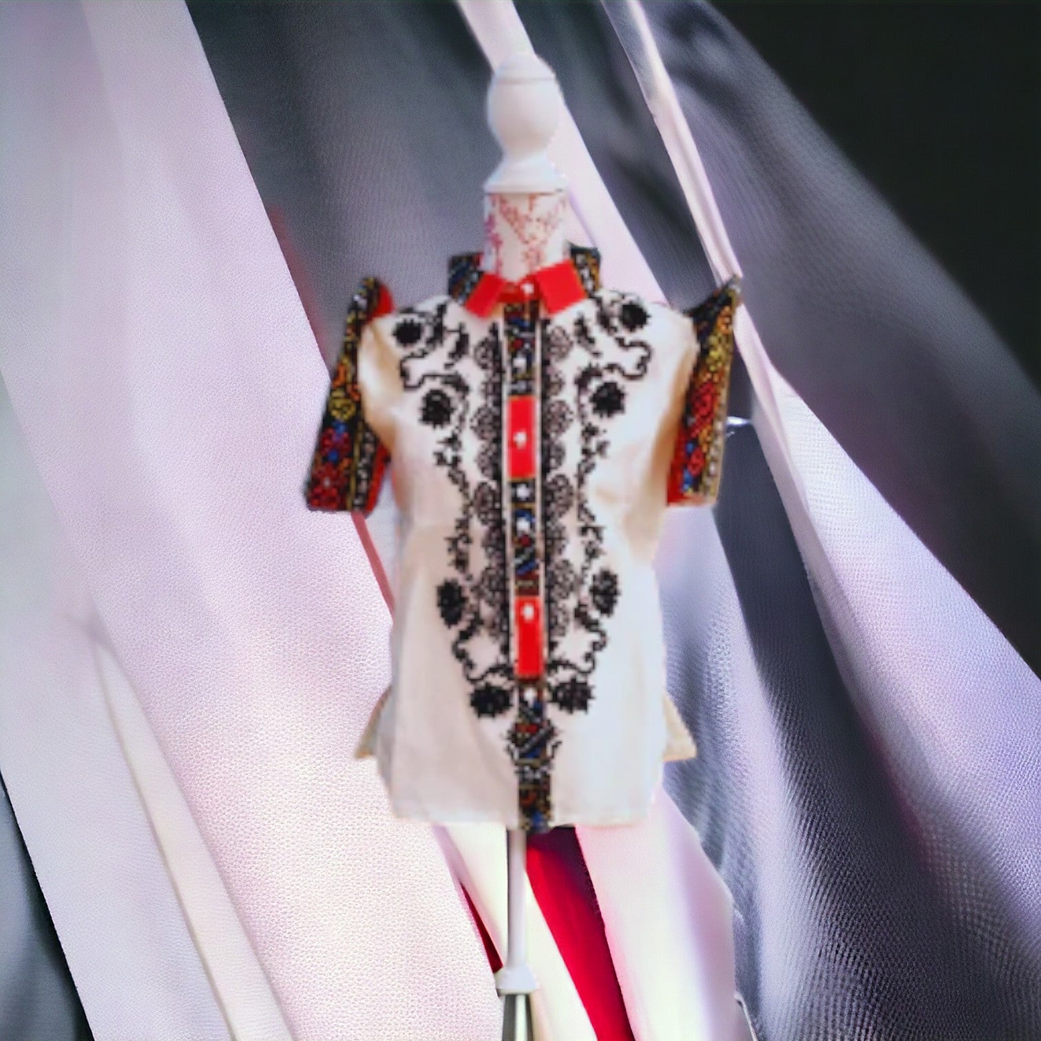 This exquisite blouse crafted from traditional Filipino embroidery is perfectly suited for adding an elegant, cultural touch to your ensemble. Evoke the spirit of the Philippine Islands with this breathtakingly beautiful garment—the perfect blend of modern fashion and timeless heritage.
