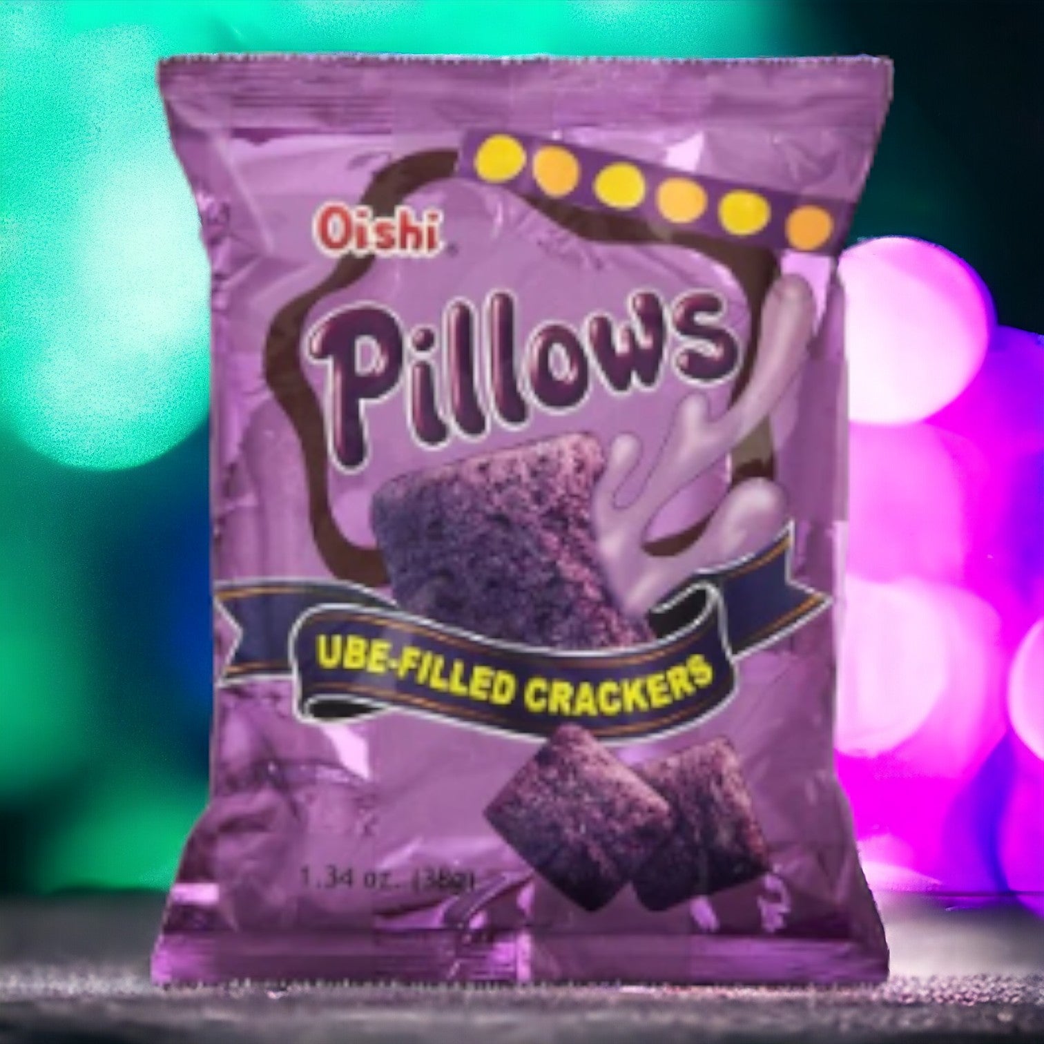 Expiry date: 2026/04/16Snuggle up for a delicious snack attack with Pillows Ube filled crackers! These crispy crackers are filled with a delightfully sweet ube filling, perfect for a snack that's sure to tantalize your taste buds. They're packed with 38g of ube-filled goodness, and the only downside is you can't have one enough!