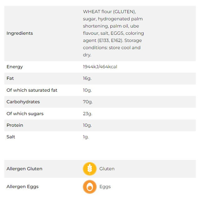 Expiry date: 2027/07/07Ube Otap Tin 600g is a tasty pastry filled with a purple yam (ube) jam. This 600g tin contains enough Ube Otap to share with family and friends. Enjoy its sweet, delicate flavor and its crunchy texture. The perfect addition to any dessert table!